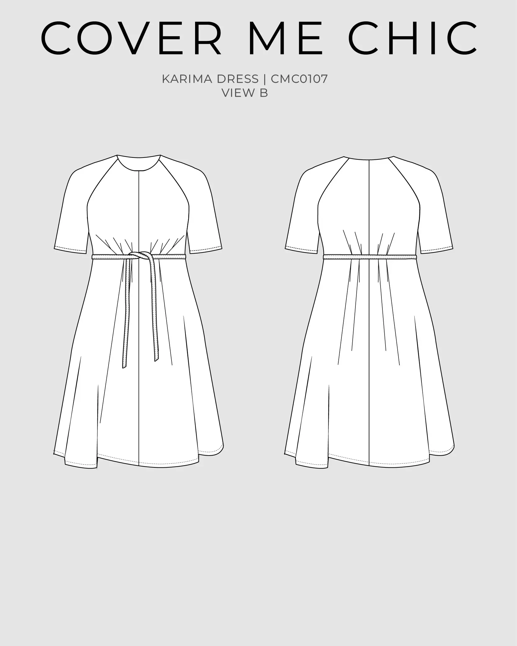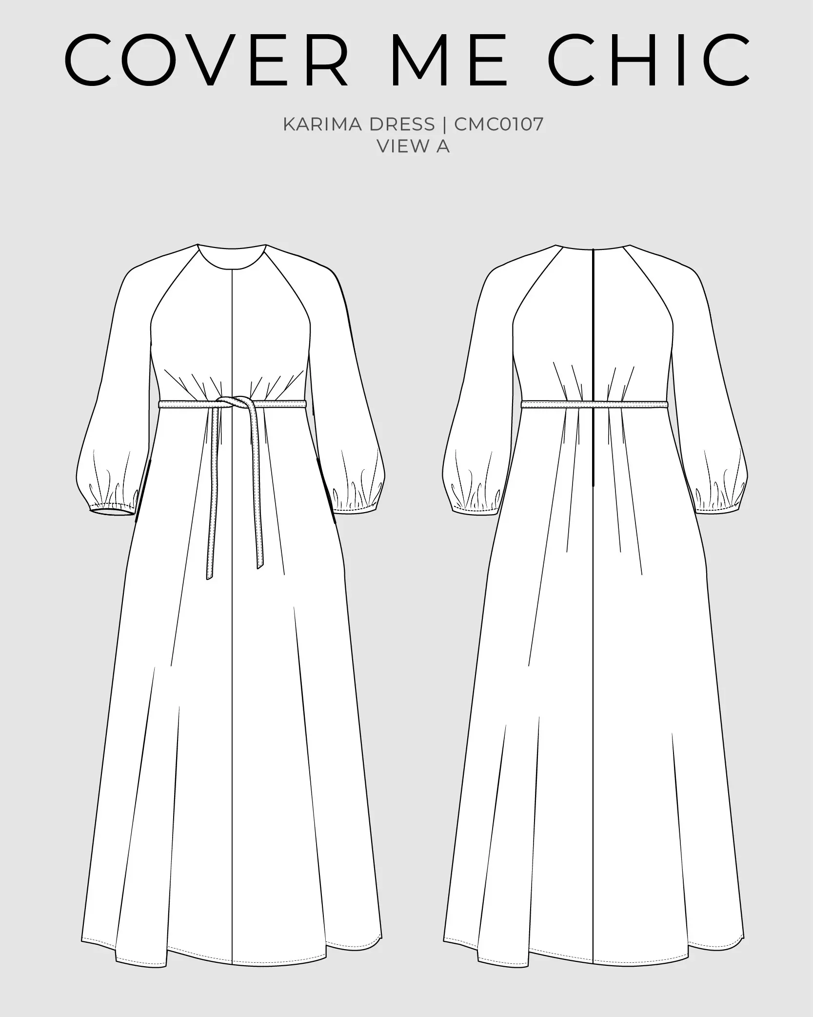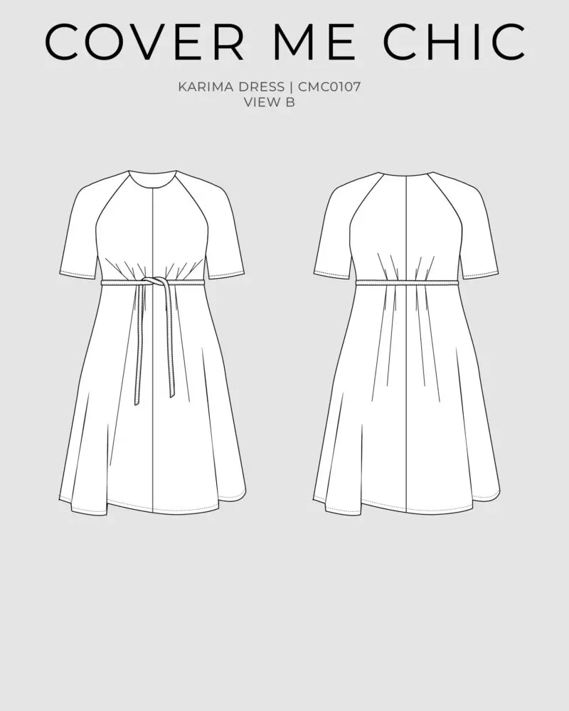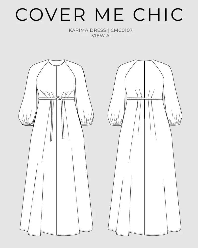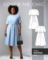 The Karima Dress is a graceful maxi dress sewing pattern designed for curves, with a flattering high waist, full skirt, and soft raglan sleeves for an easy, elegant fit. Details like the waist pleats, belt, on-seam pockets, and gently elasticized sleeve hems make it feel polished while still comfortable to wear. The invisible back zipper keeps the finish clean, while the flowing silhouette makes Karima a beautiful choice for everyday dressing, special occasions, and modest wardrobes.