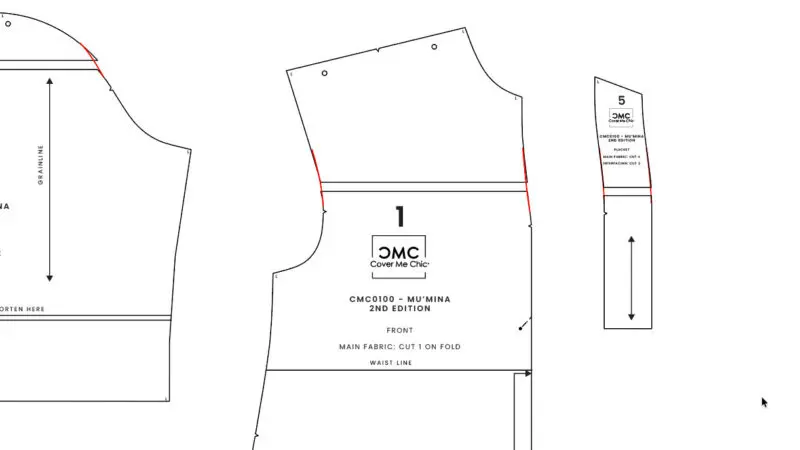 Make sure the grainline (usually a straight green or drawn line) remains perpendicular to your cut and consistent across the moved piece. This preserves fabric alignment and hang.